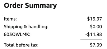 Use a secret Amazon promo code to score 60% off these Gold Eye Masks. Add this pack of 30 to your cart for $19.97. At checkout, use the code 603OWLMK for 60% off. This will bring your total down to just $7.99 for 30 pairs. Don’t wait — this code could expire at any moment.
