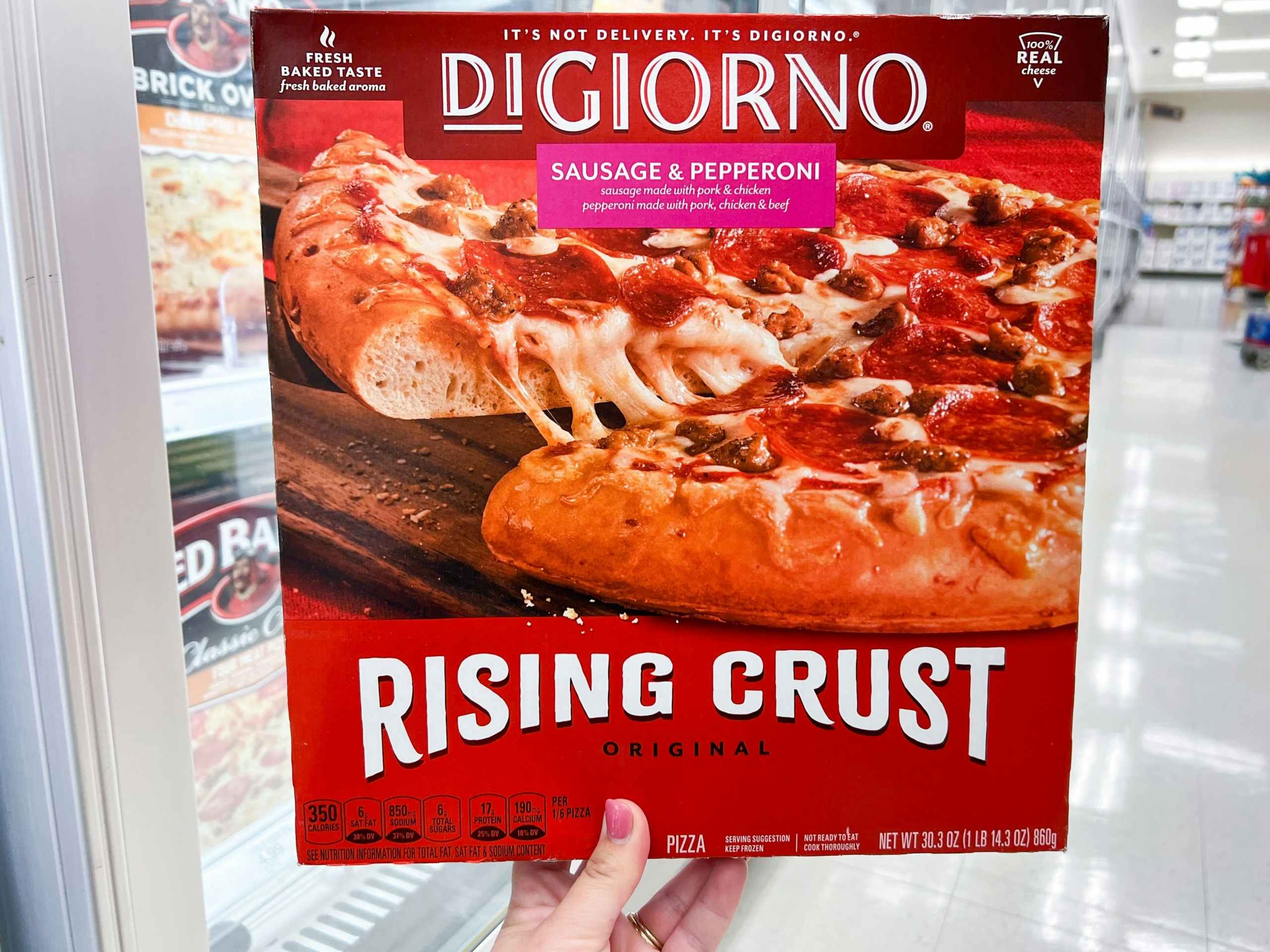Stock the freezer with $0.55 DiGiorno pizzas at Target. Originally $7.79, DiGiorno Rising Crust Pizzas are on sale for $5.99. Download the Target app and clip the 35% Circle offer and print a $2 DiGiorno coupon. Because this price is so hot, I recommend printing the coupon now. After your purchase, upload your receipt to the Fetch Rewards app (download) for a $1.25 rebate.
