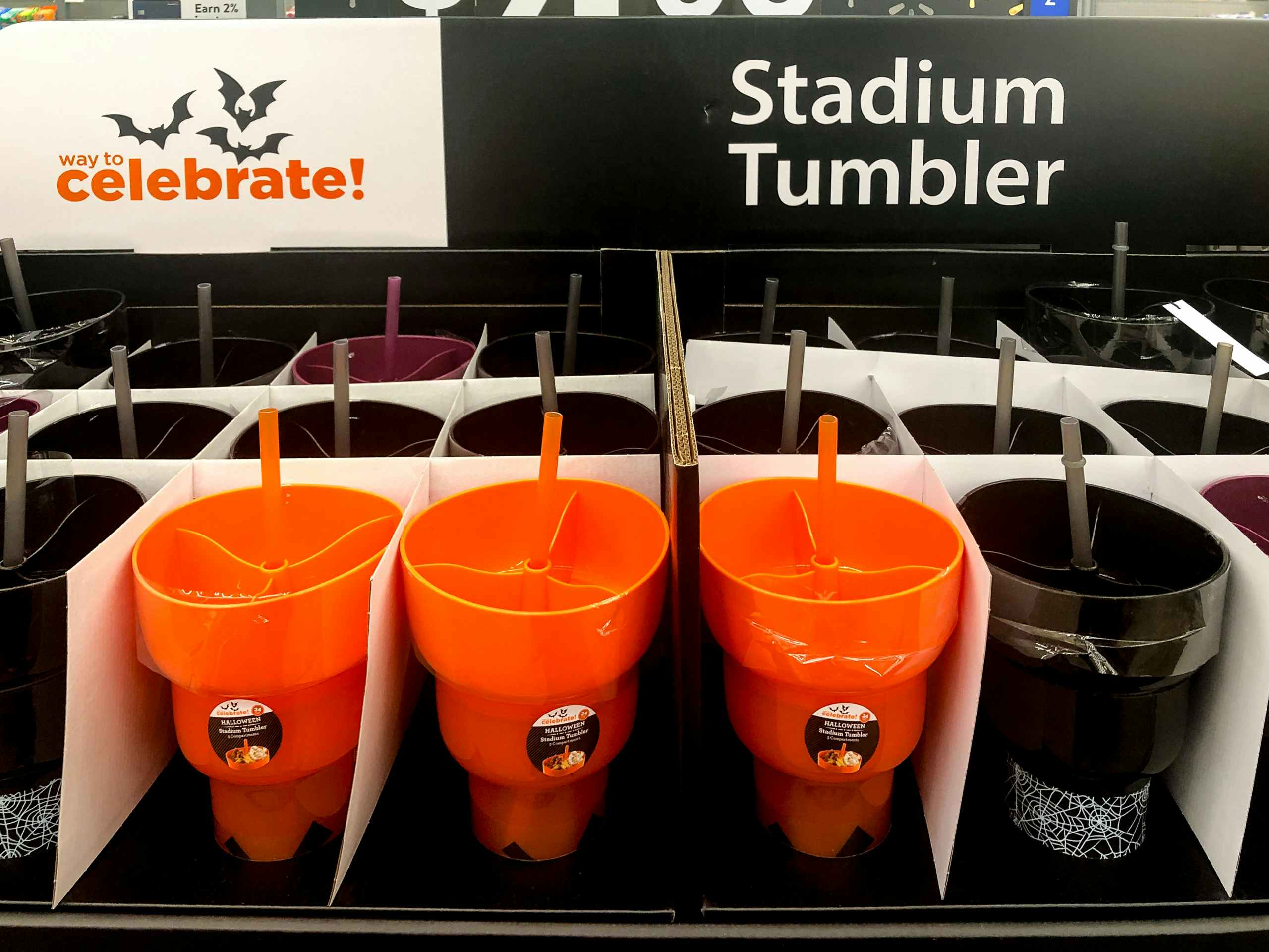 Walmart has 24-ounce stadium cups for just $4.98. Plus, they’re spooky and Halloween-themed. You can get an Orange Pumpkin, Purple Bat, or Black Spider one all for the same price. Not only can you drink out of them, but there’s a spot on the top for your snacks.