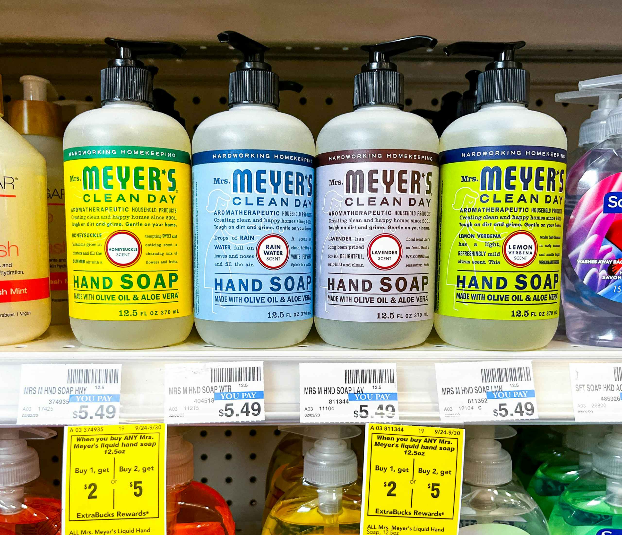 Save on Mrs. Meyer’s hand soaps at CVS. There’s an ExtraBucks promotion on the hand soaps alone. When you buy two bottles of hand soap, you’ll receive $5 in ExtraBucks. In order to receive the ExtraBucks reward, you must sign up to be a CVS account member. Once you’ve completed that step, purchase two Mrs. Meyer’s hand soaps priced around $5.49 (prices may vary by store and location). You’ll be sent the $5 ExtraBucks reward to your CVS account, making the final price $2.99 per bottle.