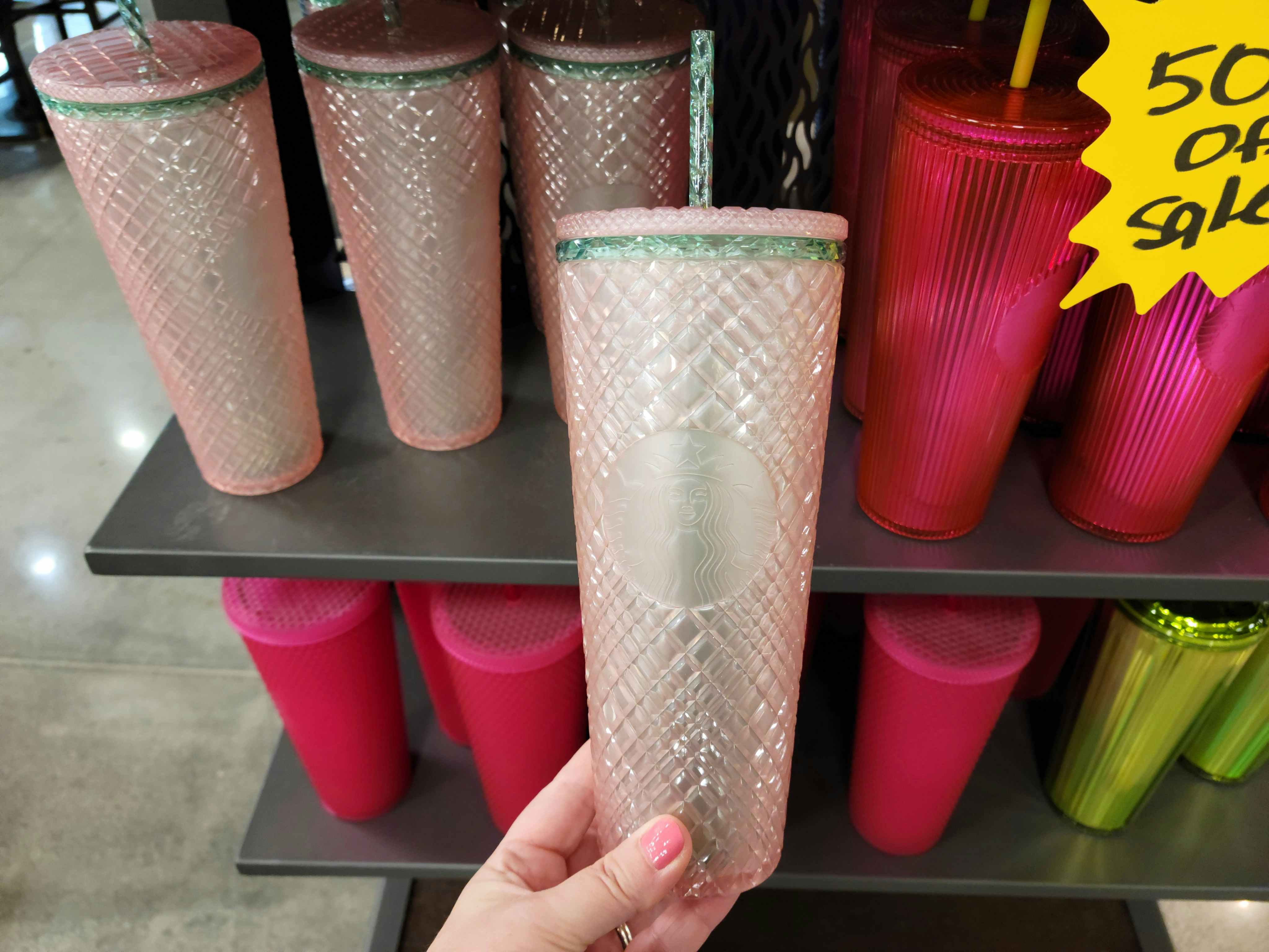 Keep in mind that clearance products, pricing, and availability can vary by location. I found these clearance cups on a rack in front of the Starbucks at my store, but you might also find them in the markdown/clearance area of the store too.
