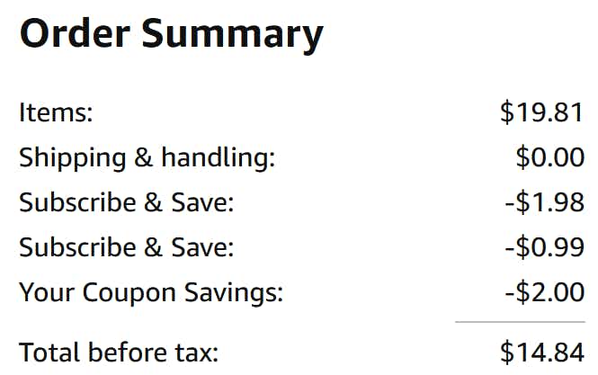 If you’re looking for a refresher on how Subscribe & Save works, here’s the low down: Opt in today and immediately score 10% off. Or, opt in for recurring deliveries of five or more items to a single address for 15% off. Shop more of our Subscribe & Save deals to easily reach the 5-item minimum.