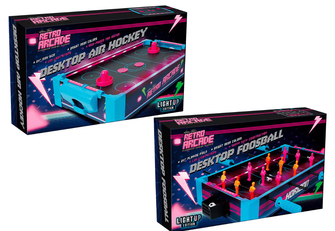 Take your next lunch break to the next level with these desktop Retro Arcade games I spotted at JCPenney. You can choose between Air Hockey and Foosball for only $19.99, originally $44. Want to know a cool feature of these games? They light up for an even more immersive play experience.