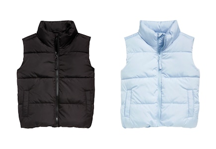 Shop online or in stores at Old Navy to score puffer vests for the fam for $15 and under for today only.