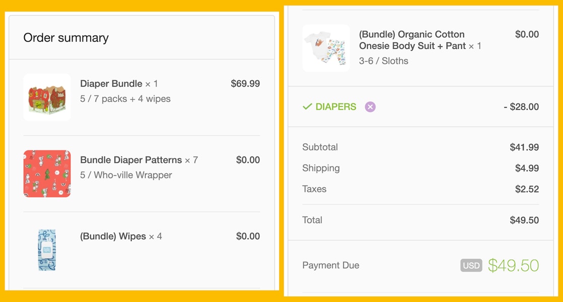 Under “order summary” enter promo code DIAPERS.