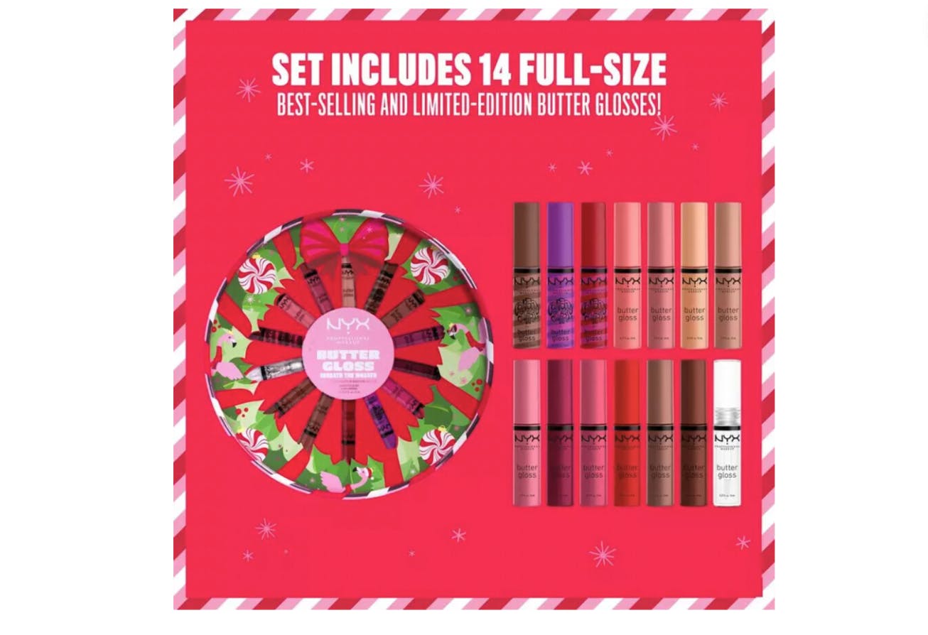 I spotted a sweet deal at Ulta. This Christmasy NYX Butter Gloss set is on sale for $45, originally $60. With a total value of $84 (usually $6 each), you get 14 full-sized lip glosses for just $3.21 per gloss. This set is greay for growing your makeup stash, or splitting them for gifts and stocking stuffers.