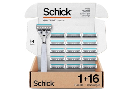Get to Amazon for a new 40% off coupon on the Schick Quattro Titanium Razor. Not only will you get 40% off, but this set comes with 16 refills. Be sure to clip the coupon and check out with Subscribe & Save. Using Subscribe & Save will get you another 5% or 15% off. Pay as little as $13.49, normally $29.99.