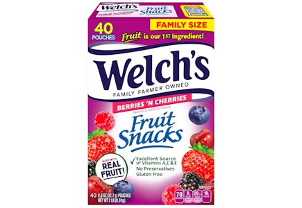 Score Welch's Fruit Snacks 40-Pack Boxes from Amazon. Prices on these boxes start at $8.48. Clip the coupons located on the product page (priced up to $1.74 off). Subscribe & Save offers a discount on both boxes of up to 15% off. Spend as little as $5.47.