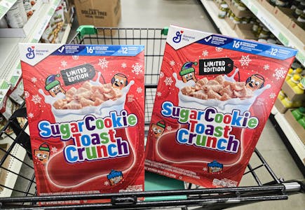 On my latest Dollar Tree run, I spotted General Mills Sugar Cookie Toast Crunch for just $1.25. This deal meets our stock-up price for cereal. We recommend stocking up on cereal when you can get it for under $2 a box.