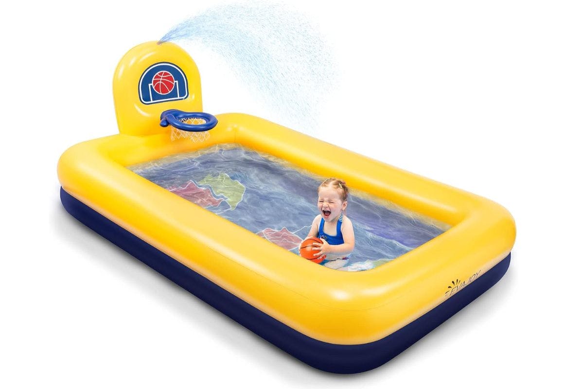Amazon has a deal on an inflatable kiddie pool that comes with a built-in basketball hoop. It's usually priced at $27.76, but it's on sale for only $15.