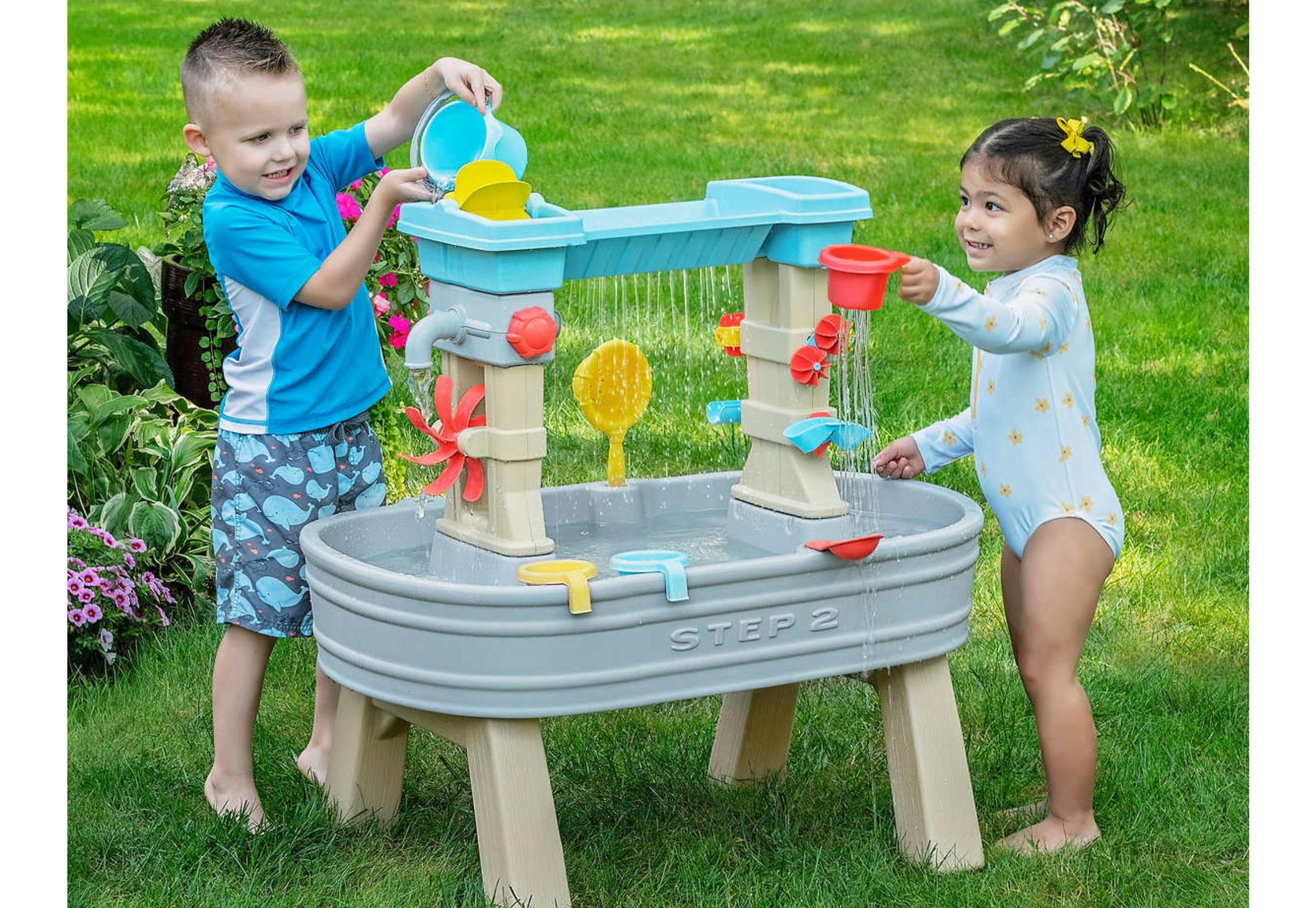 Summer inventory has arrived at Costco, featuring the Step2 Rain Showers and Flow Water Table priced at just $69.99. This water table includes 15 accessories, such as a bucket, flipper, strainer, three cups, and more.