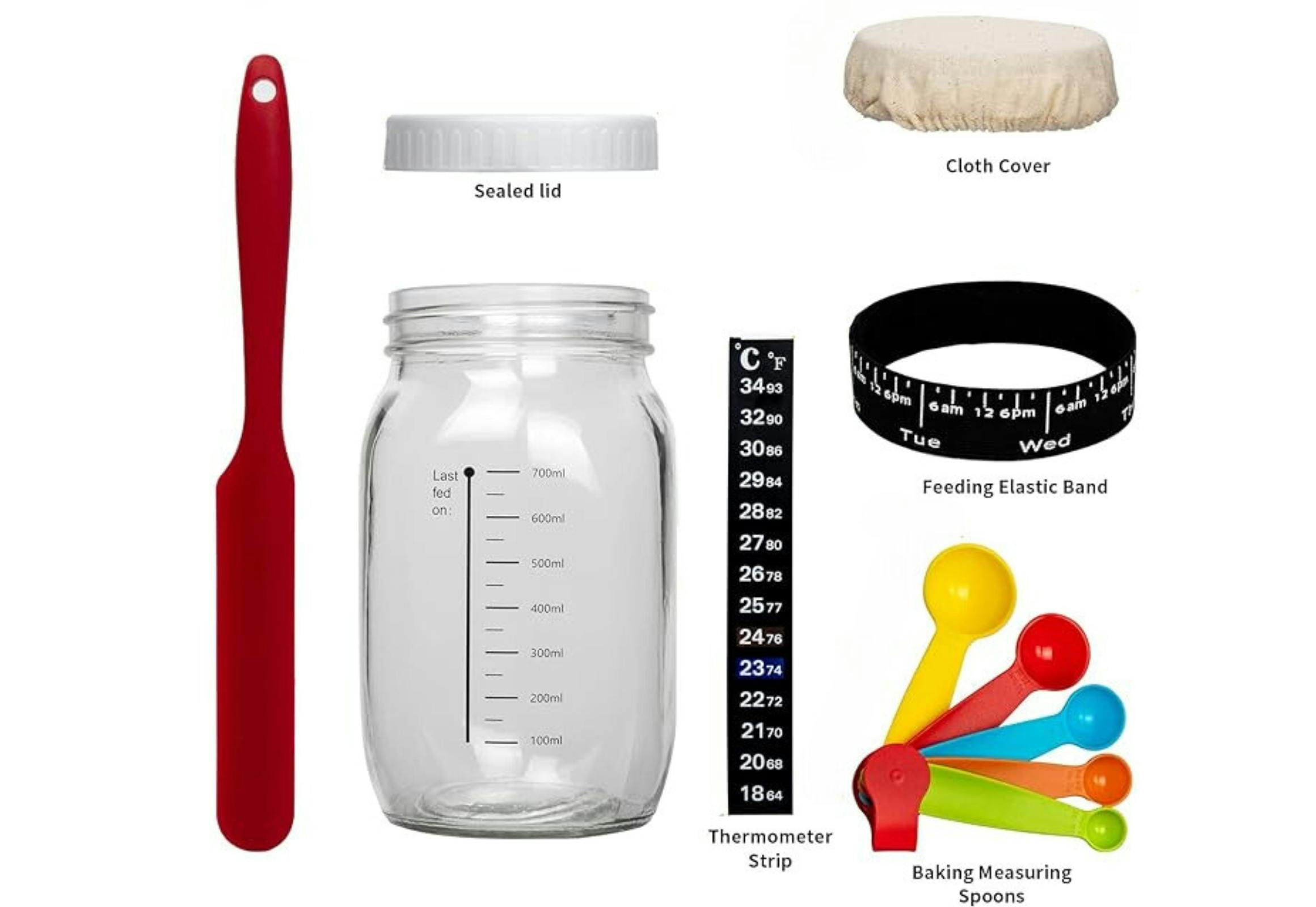 If you already have several of these items, consider checking out Dollar Tree for everything you need for a sourdough starter kit.