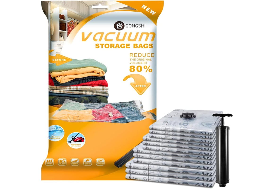 Get a pack of 12 vacuum storage bags in jumbo, large, medium, and small for $15.98 on Amazon. That's a savings of 50%, and no Amazon coupons or Amazon promo codes are required for this easy deal.