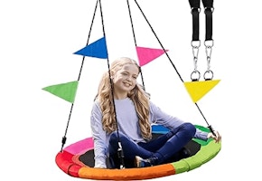 If you're planning more outdoor activities, check out this 40-inch saucer swing on Amazon. It's on sale for $44.99, when it regularly goes for $59.99. This swing has a 900-pound capacity; it's made with waterproof fabric and comes with heavy-duty straps and carabiners for hanging.