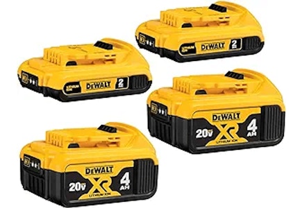 Score over 50% off this 4-pack of Dewalt 20V Max Batteries on Amazon. This pack is on sale for just $149, normally $359. You're paying only $37.25 per battery. Order now — this is the lowest price tracked on Amazon this year.