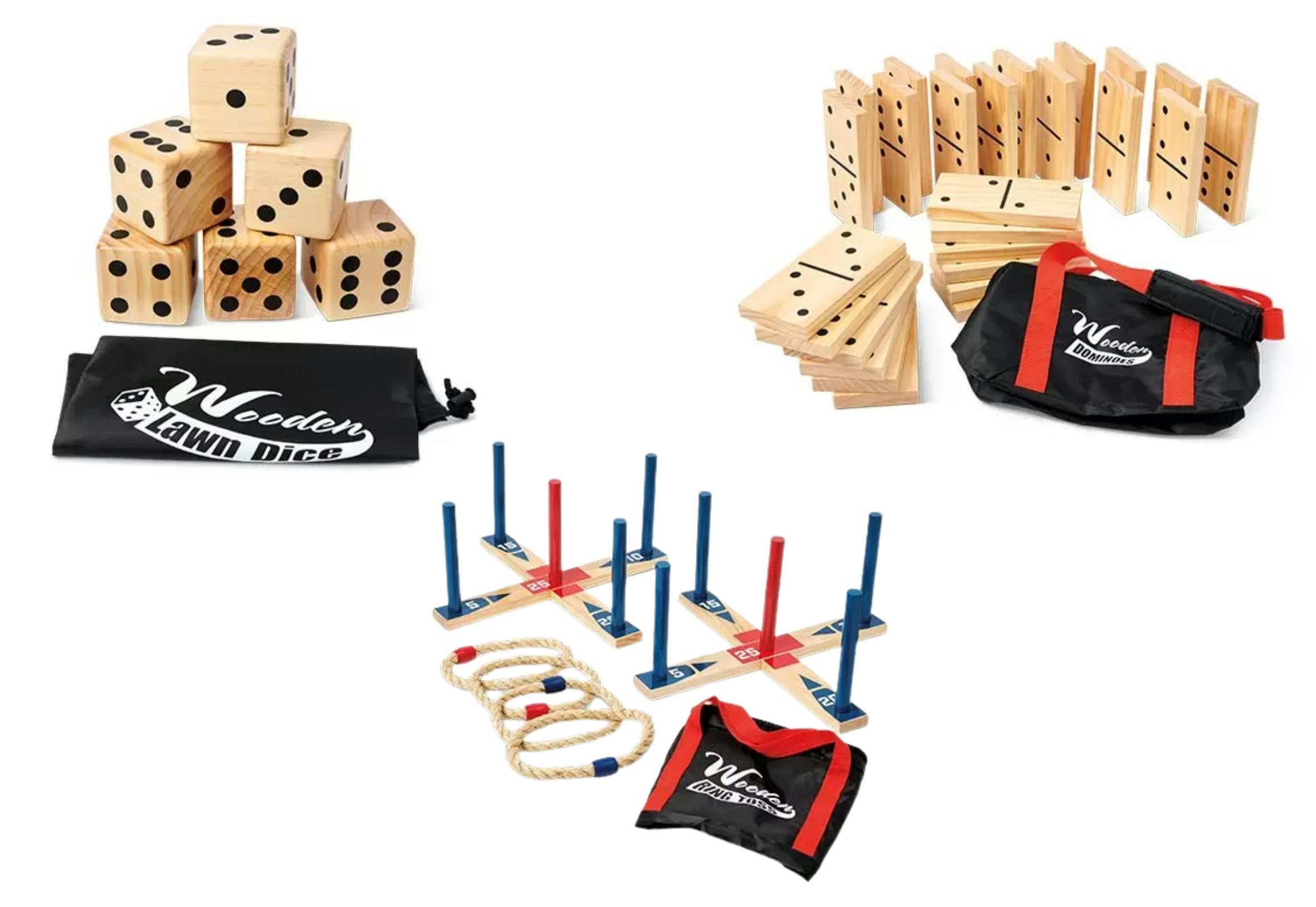 Aldi shoppers can find summer outdoor games starting at $8.99 for sprinklers. The extra-large sport game is $9.99, and both the giant parachute and 6-pack pickleballs are $9.99 each. The dominoes, wooden dice, ring toss, and Toss Like a Boss set are $12.99 each. Disc golf and spike battle are $14.99, and the pickleball paddle is $19.99.