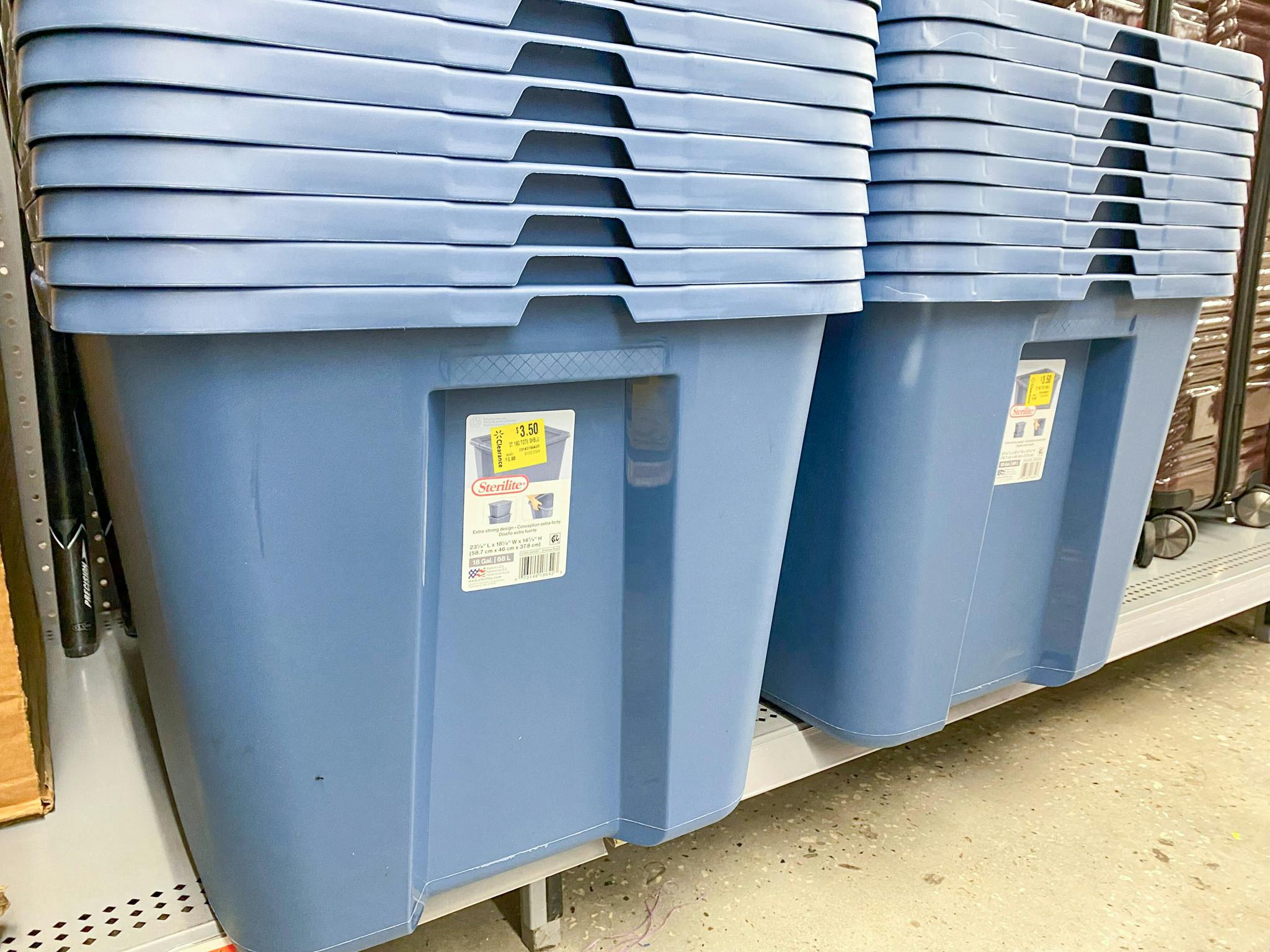Check out this clearance find at Walmart. 18-gallon Sterilite storage tote boxes are marked down to just $3.50. I found them in the dedicated clearance aisle at my store, not in the home section, so keep an eye out. Availability and prices may vary by location.