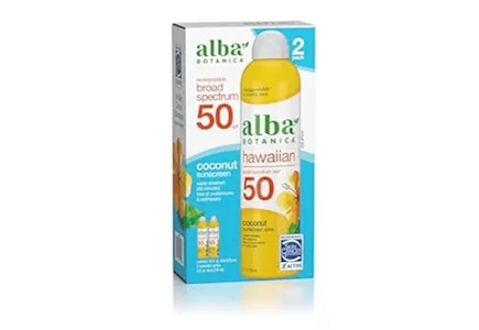 The Alba Botanica Hawaiian sunscreen spray 2-pack is on sale at Amazon. It's normally priced at $23.99, the bottles are discounted to only $10.45. You'll save 56%.