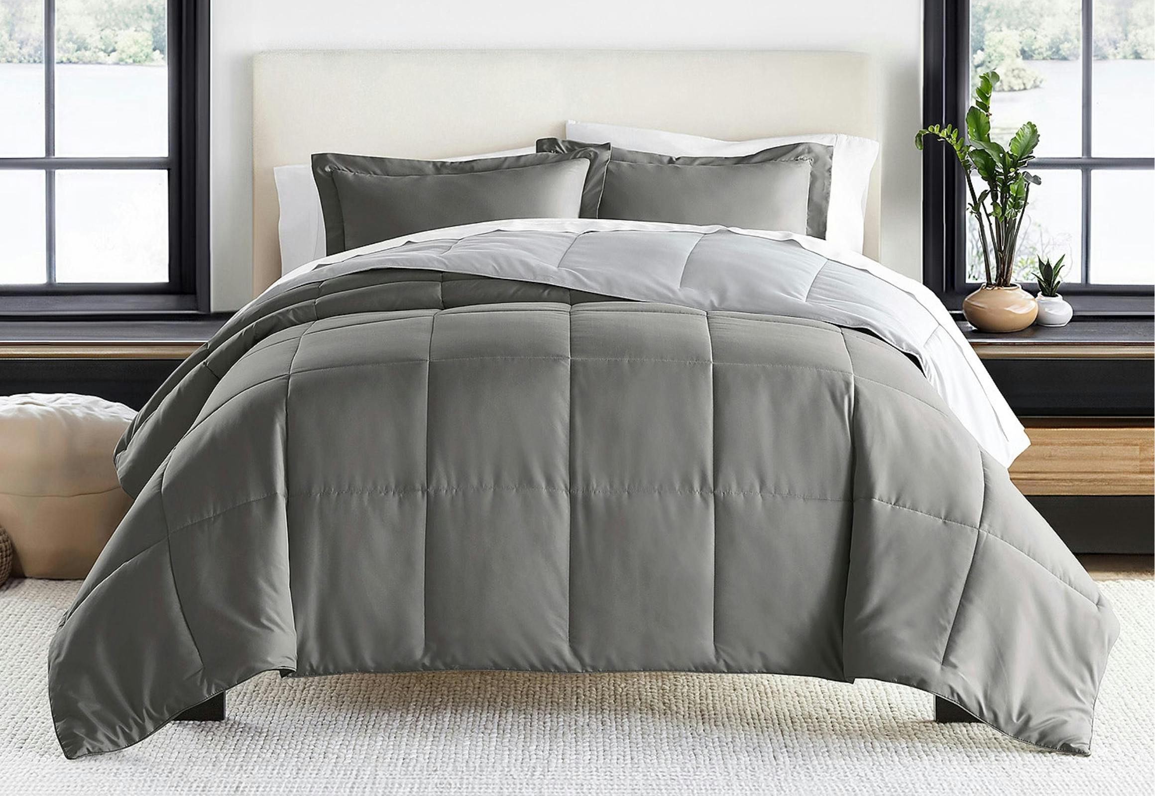 These Casual Comforter sets come with a comforter and a sham. It's a down-alternative material, and it's reversible.