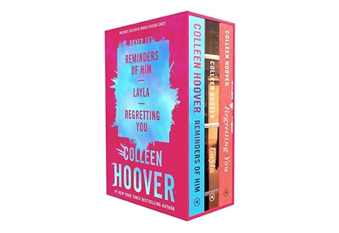 The Colleen Hoover 3-Book Boxed Set is on sale for $29.39 for Amazon Prime Day. That comes out to only $9.80 per book. It includes Reminders of Him , Layla , and Regretting You .