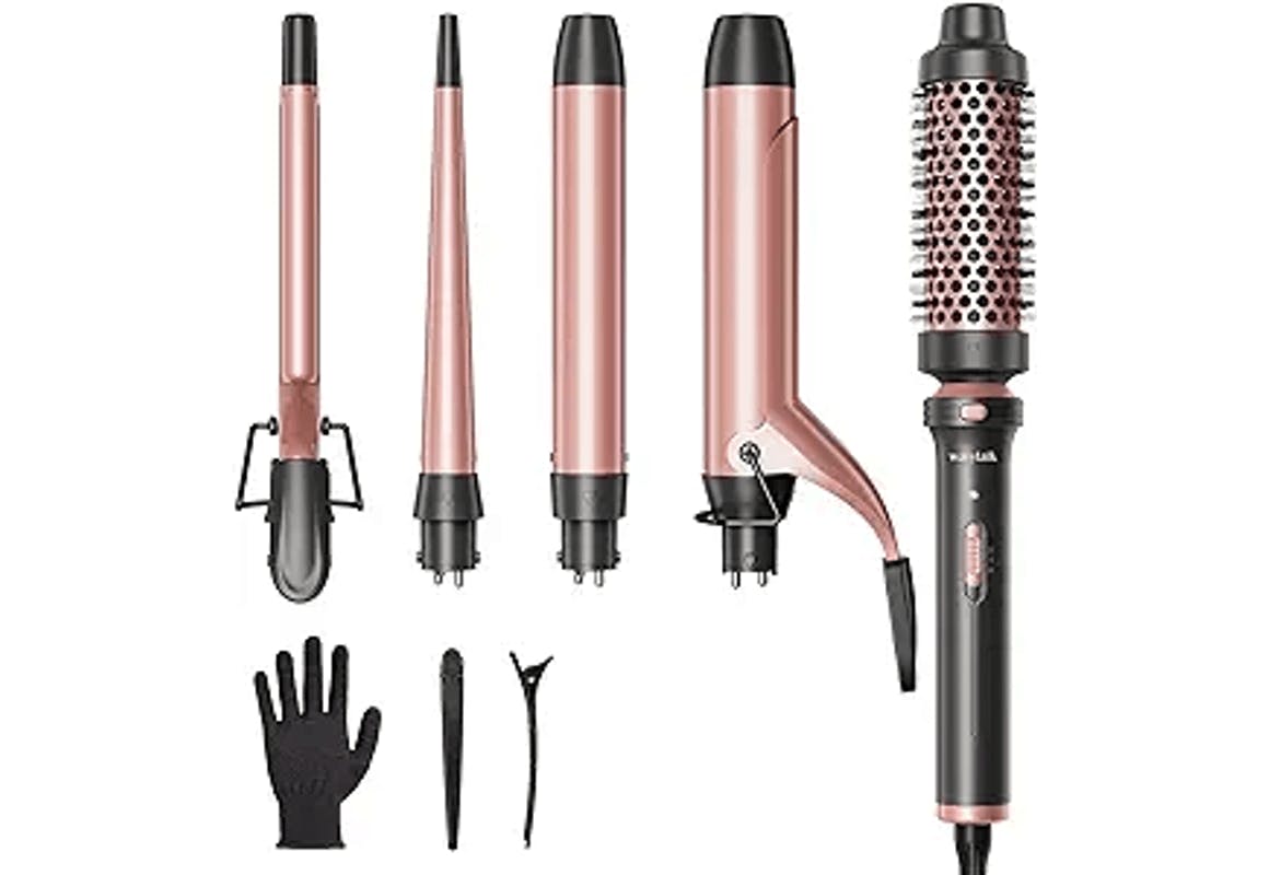 Shop at Amazon for a deal on a curling iron. This customizable curling iron includes a curling brush, four interchangeable barrels, gloves, and heat clips. For a limited time, it's on sale for $46.99, normally $53.99. Save even more with an Amazon coupon for $4 off at checkout for a final price of just $42.99.