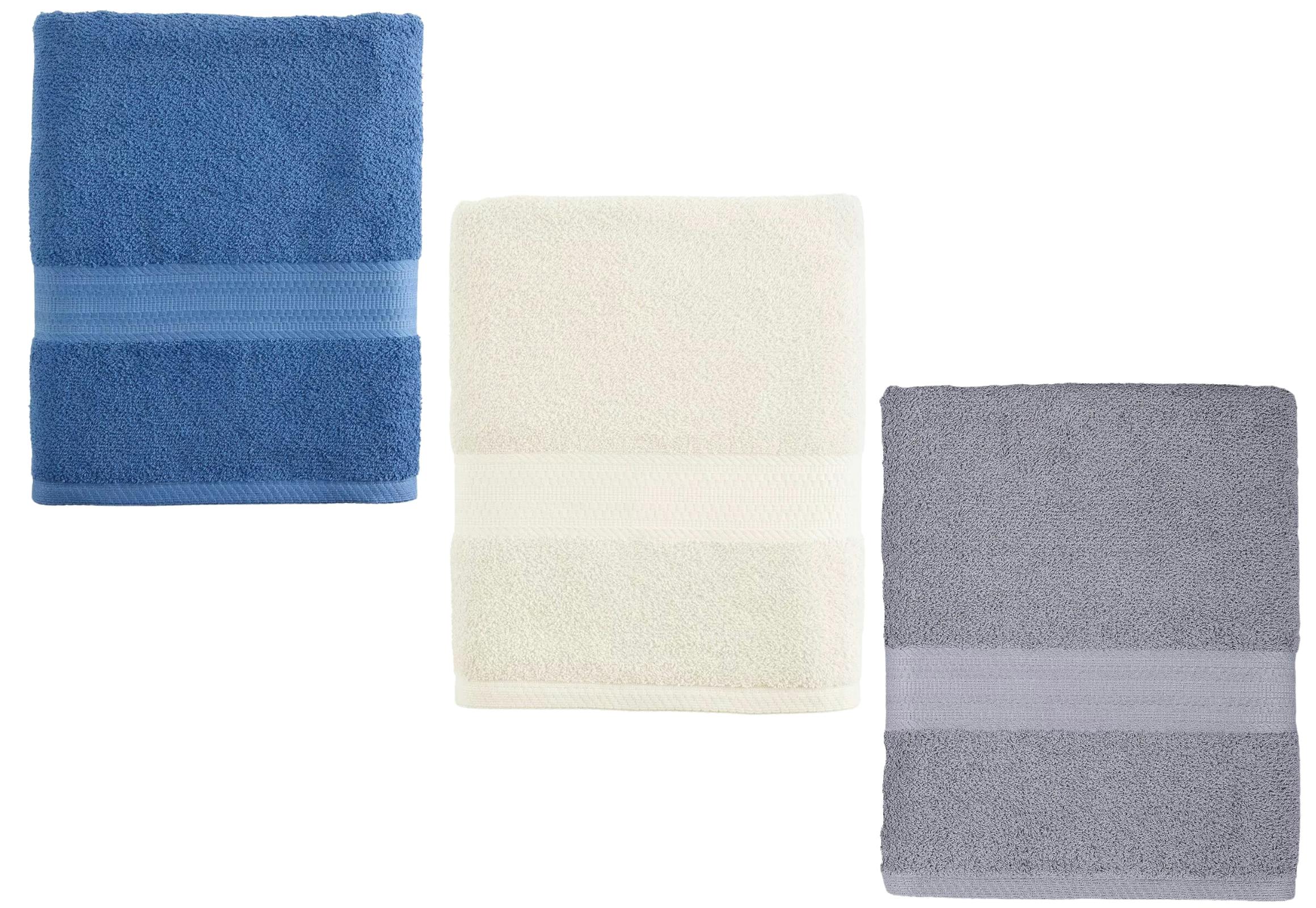 These bath towels measure 30 x 54 inches and can be machine washed. They have several different colors to choose from.