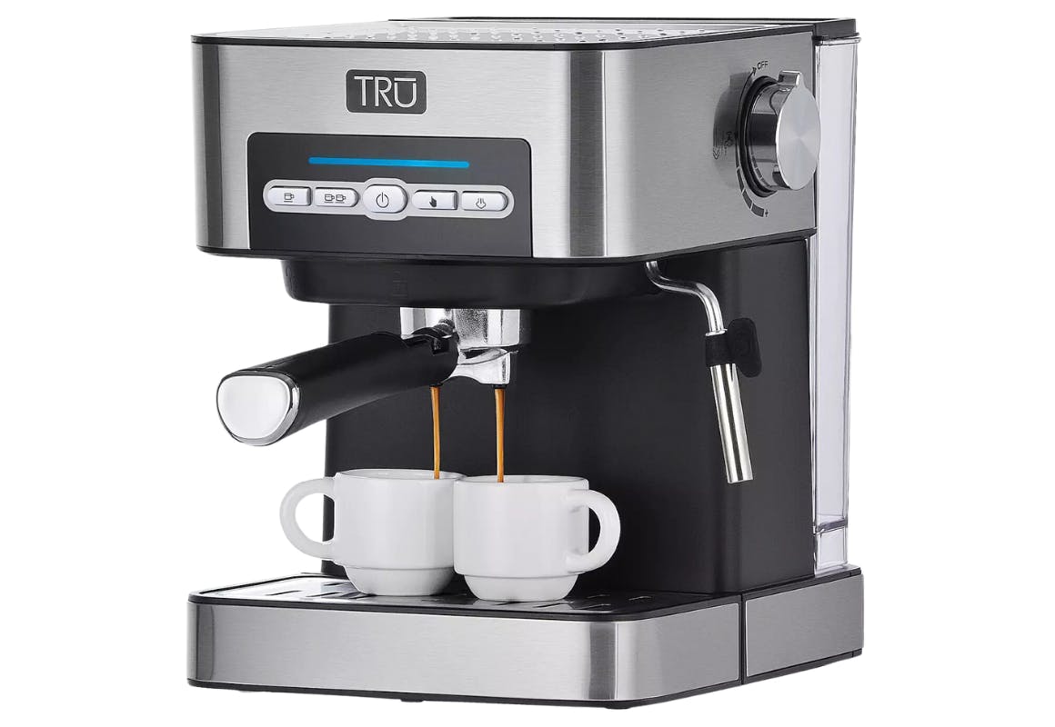 Enjoy an espresso at home with the Tru 15-bar espresso machine I found at Kohl's for $40.99. It's on sale for $79.99, originally $109.99. But you can get it for less when you use code GET10 at checkout for $10 off your order of $50 or more and stack it with code SAVEBIG20 for 20% off. That brings the price down to $55.99.