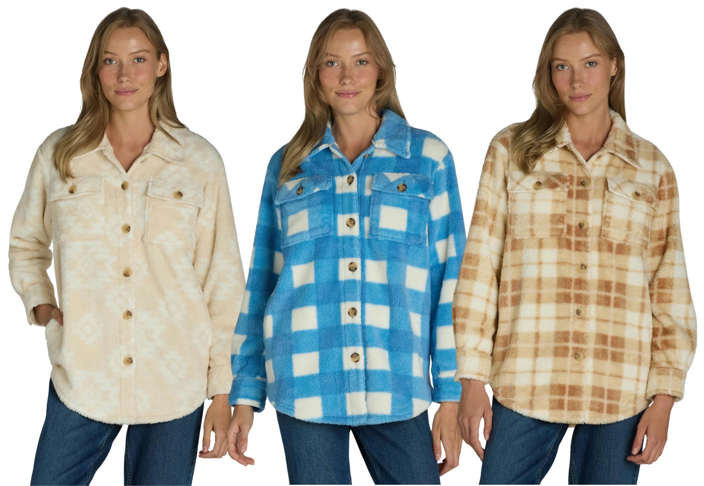 Add these Time and Tru women's faux shearling shackets to your wardrobe and save. Walmart has them on Rollback right now for just $12.98, and they come in six different styles.