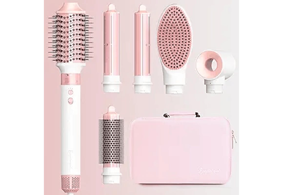 You can get this 6-in-1 hair dryer air styler for $57.99 right now on Amazon. That's a savings of $102 on the regular price. It has several attachments, including three styling brushes, two curling irons, and a hair dryer, along with a carrying case.