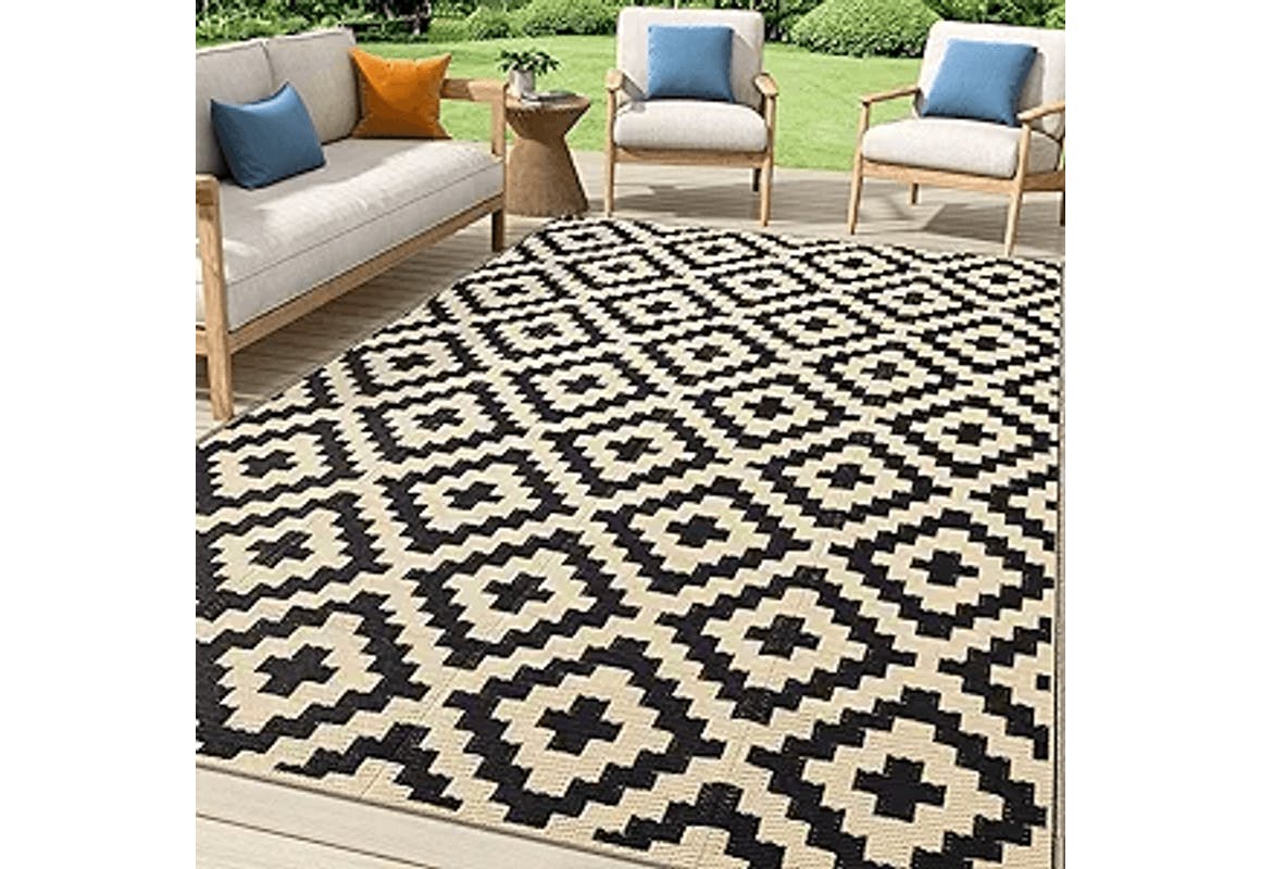 Amazon drops the price of this reversible waterproof outdoor area rug from $49.99 to only $17.49. It measures five feet by eight feet, and it's breathable so water doesn't accumulate.