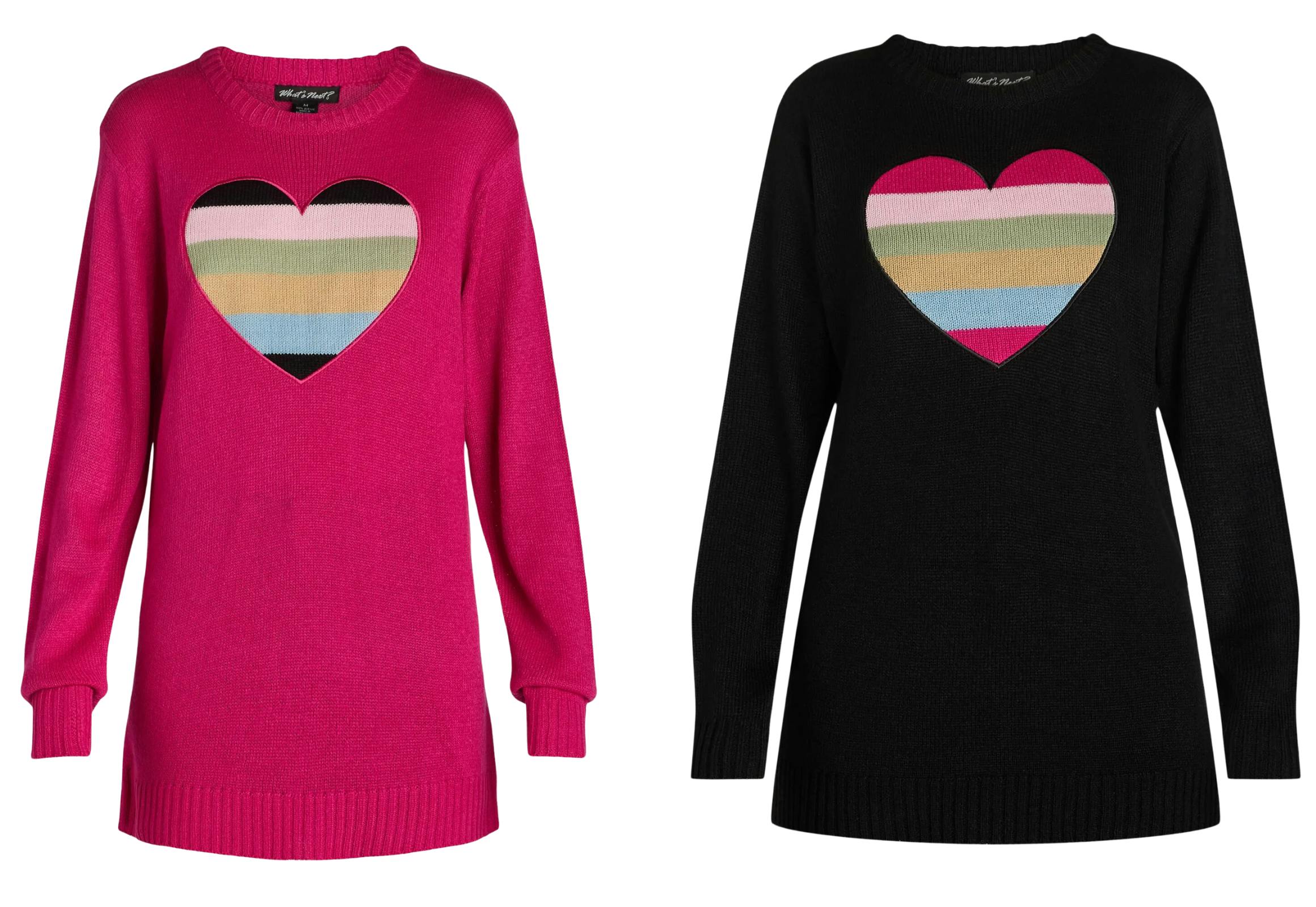 Check out these heart pullover sweaters I found on clearance at Walmart. Starting at $5.22, they're available in either pink or black with a patch heart in the center. Please keep in mind the price may vary depending on the size and color you choose.