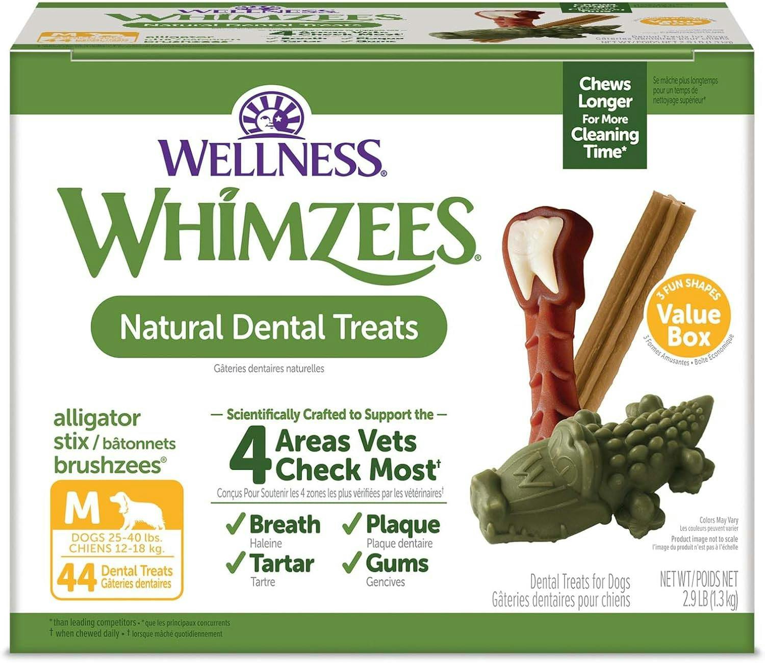 There's an Amazon promotion on the 44-count box of Whimzees dental treats. If you buy one box, you'll automatically save 50% at checkout. That lowers the price to $22.49.