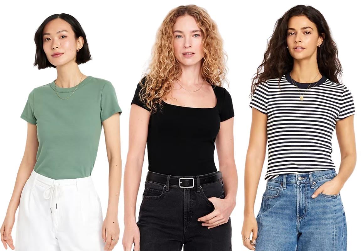 This weekend, you can score women's T-shirts and tank tops for just $5 at Old Navy. Original prices can be as high as $14.99, so you'll save up to 67%.