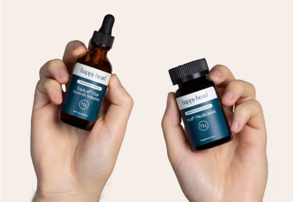 Happy Head is a company that provides personalized, dermatologist-prescribed hair loss treatments for men and women. They offer custom topical solutions and oral medications made with FDA-approved ingredients like minoxidil and finasteride. After an online consultation, treatments are shipped directly to customers.