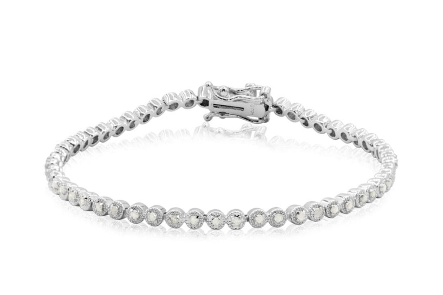 This 7-inch bracelet is made of platinum-plated brass and set with 32 natural rose-cut diamonds totaling 0.48 carats.