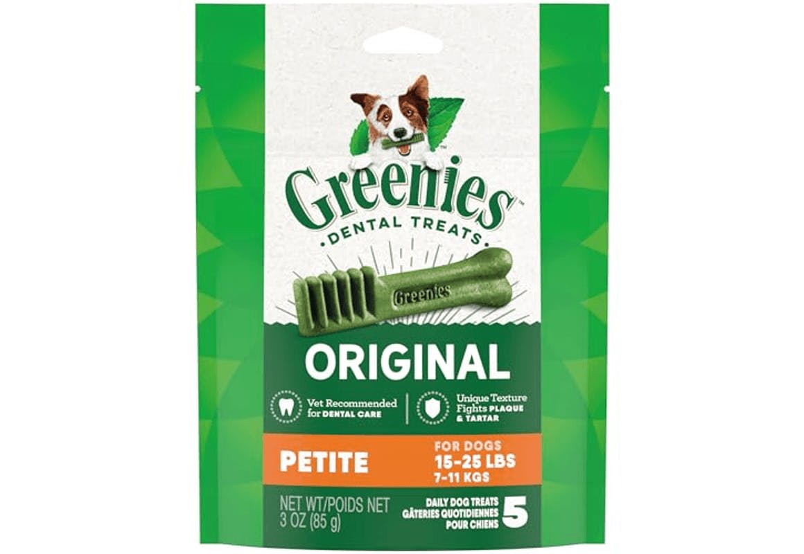 Save on this 5-pack of Greenies petite dog treats on Amazon. These dental treats are on sale for $3.76, normally $5.78. Clip the coupon for 35% off and check out through Subscribe & Save for a final price of $2.25. Please note that coupon availability varies by account.