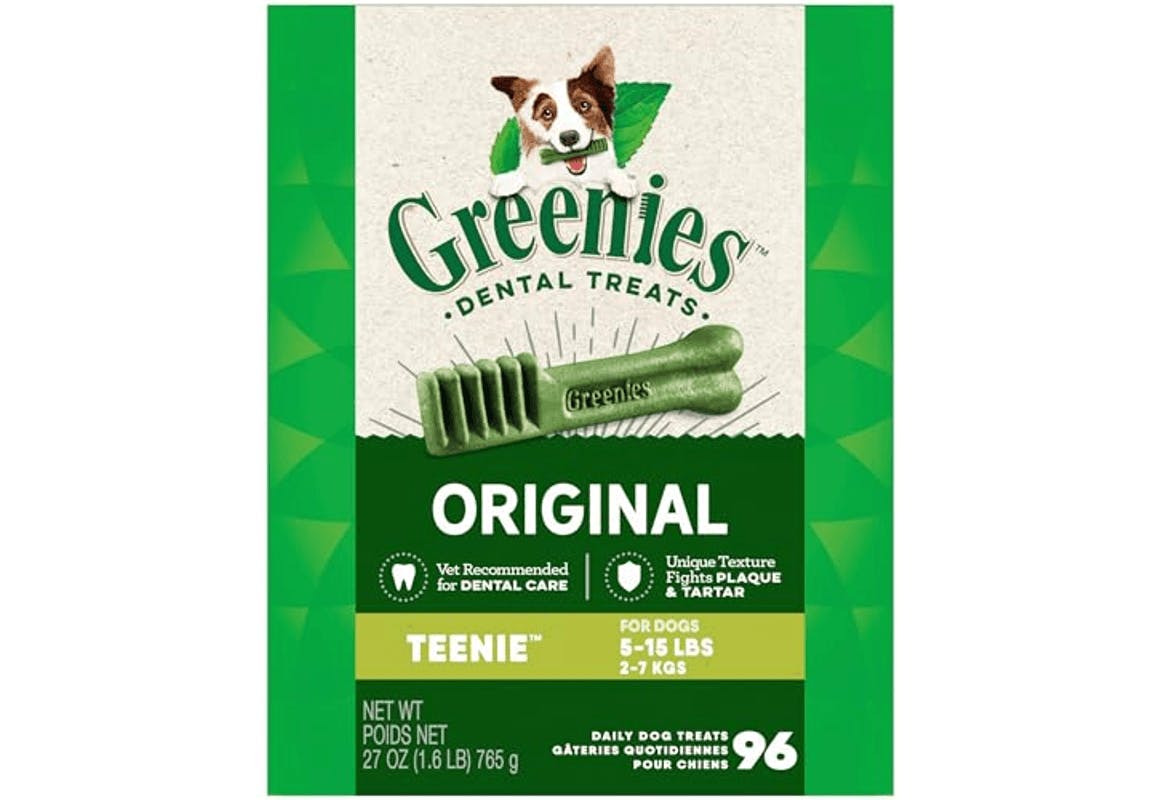 The 96-count pack of Greenies Original Teenie Dog Treats is on sale for $21.49 on Amazon. You may have a Subscribe & Save coupon for 35% off on the product page, too. It'll drop your total to as low as $10.72 at setup, normally $32.98.