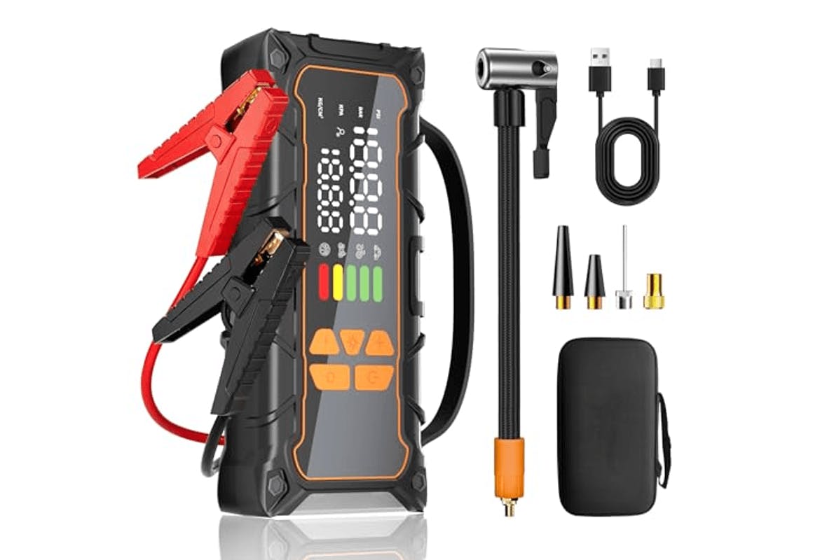 You can get this 4,000 amp portable jump starter with air compressor on Amazon. Grab it for just $27.49 when you apply the code 8PWUW8KA.