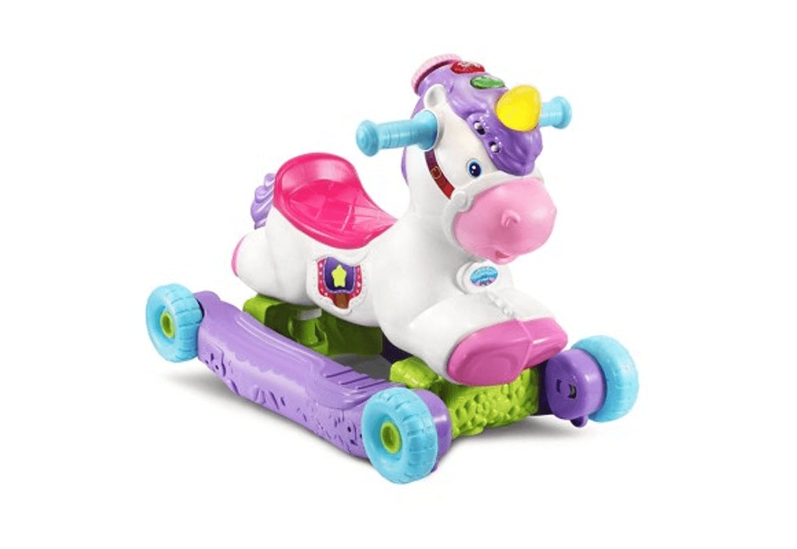 The VTech Prance and Rock Learning Unicorn is on sale for $34.99 at Target, or pay $33.24 with a Circle Card. This grow-with-me unicorn transforms from a rocker to a ride-on.