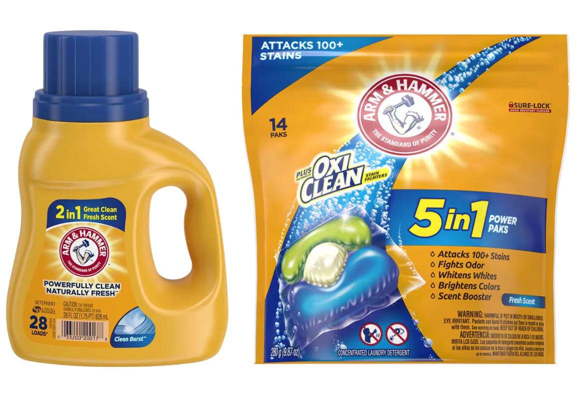 Get two Arm & Hammer laundry products for just $2.50 each — no coupons needed. Select laundry care is on a buy one, get one free promotion. Choose between the detergent, power paks, and scent boosters.