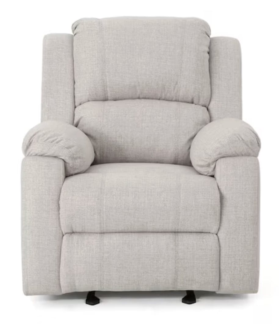 Get this glider recliner for $232.38 at The Home Depot while it's on sale for a limited time. It seats up to 250 pounds and has extra cushions for added comfort.