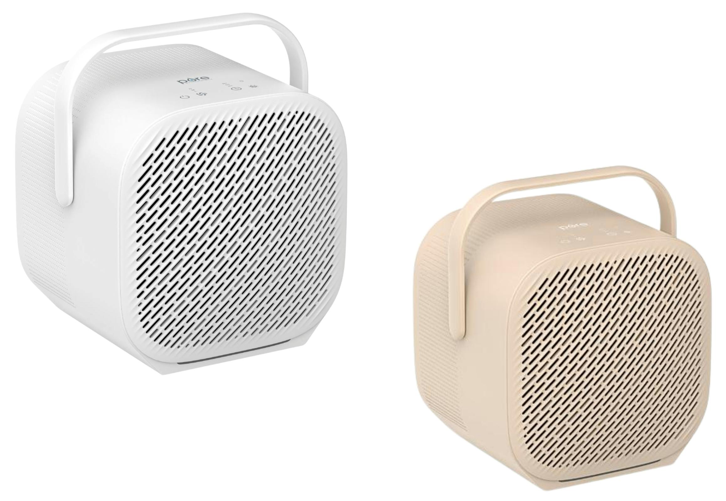 This air purifier supports dual-direction airflow, either horizontal or vertical. It includes an optional night light and a sleep mode. The unit uses a three-stage filtration system consisting of a nylon pre-filter, a true HEPA filter, and a carbon filter.
