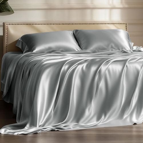 Prime members can save 56% when buying this Bedsure queen satin sheet set on Amazon. The silver grey sheet set normally retails for $44.99, but now it's only $19.99.