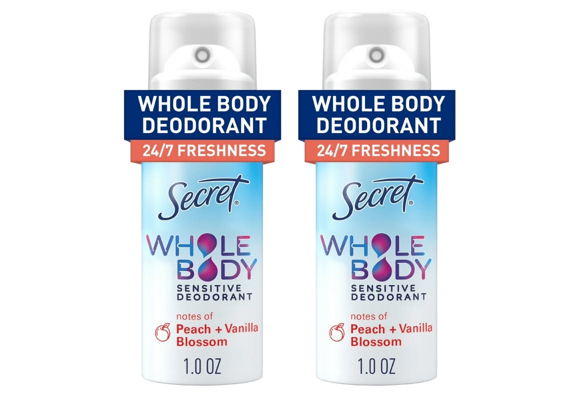 Secret Whole Body Deodorant Sprays in the 1-ounce Peach and Vanilla Blossom scent are $4 at Walmart. Pick up two for $8, then earn $7 back in Walmart Cash, bringing your final cost to just $1 total, or $0.50 per spray. Walmart Cash offers can change at any time, so grab this deal to score 88% off while you still can. For perspective, over 1,000 have been sold since yesterday, which could lead to a sellout soon.