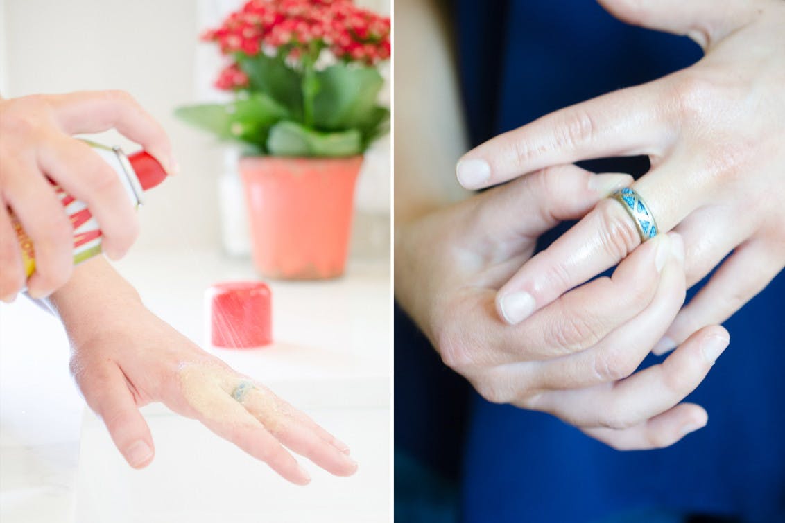 person holding a can of formula over a cart