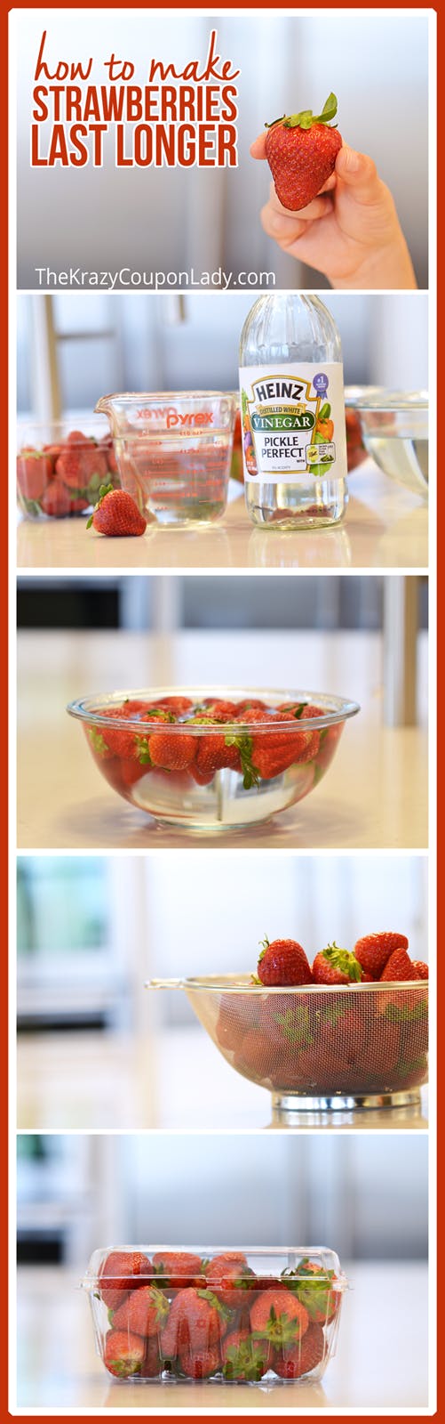 Before you stick your strawberries in the fridge, give them a quick bath in vinegar. In vinegar? Yep. Stay with me.