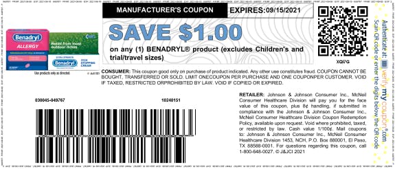 One $1/1 - Any Benadryl product (excludes Children’s and trial/travel sizes)