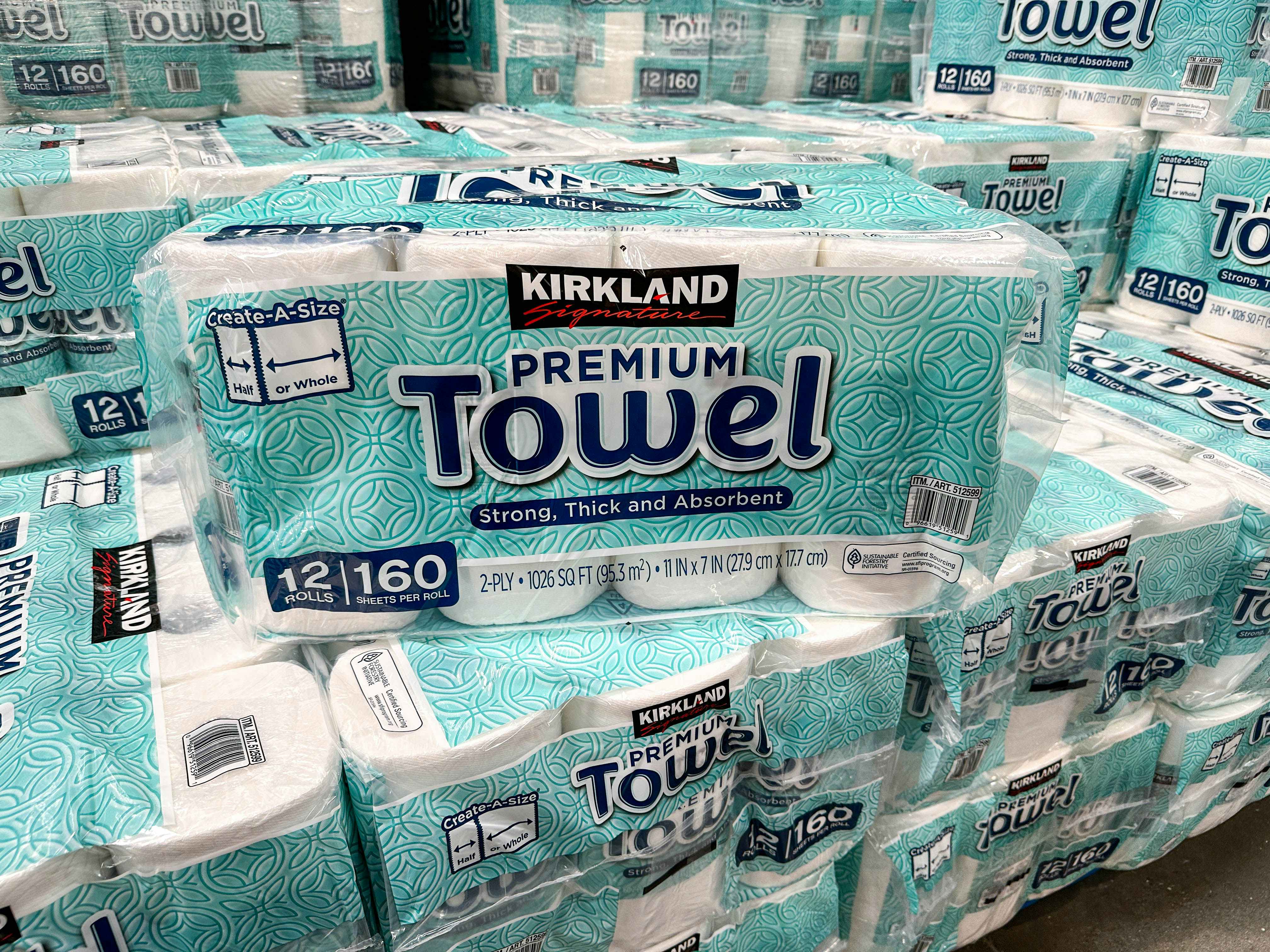 When calculating the cost per square foot of paper towels, Kirkland products are a steal compared to Bounty Paper Towels sold by Costco.