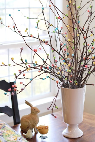 Jelly beans and branches totally belong together in the spring. When you glue them to each other, the result is absolutely stunning.