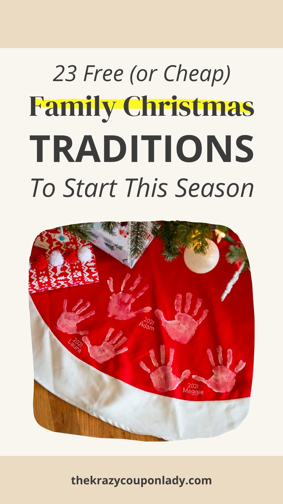 1. Start a family Christmas tradition of adding kids’ handprints to a Christmas tree skirt.